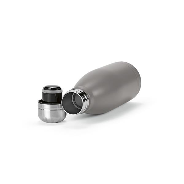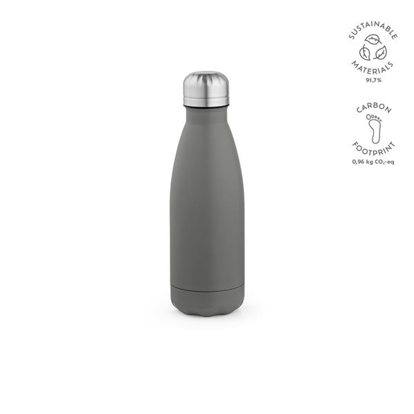Ta pochodząca z recyklingu butelka ze stali nierdzewnej o pojemności 430 ml (400 ml netto) zachwyca matowym, pełnokolorowym urokiem, a przy tym jest odporna na mycie w zmywarce i przeciekanie. Konstrukcja z podwójnymi ściankami dodaje jej użyteczności. Wyróżnij się, popijając napój w sposób przyjazny dla środowiska.