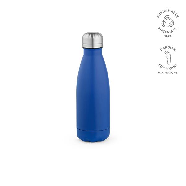 Ta pochodząca z recyklingu butelka ze stali nierdzewnej o pojemności 430 ml (400 ml netto) zachwyca matowym, pełnokolorowym urokiem, a przy tym jest odporna na mycie w zmywarce i przeciekanie. Konstrukcja z podwójnymi ściankami dodaje jej użyteczności. Wyróżnij się, popijając napój w sposób przyjazny dla środowiska.
