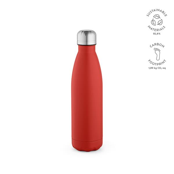 Ekologiczne nawodnienie w najlepszym wydaniu: Nasza butelka z recyklingowanej stali nierdzewnej o pojemności 535 ml (500 ml netto) jest pełna kolorów. Można ją myć w zmywarce, jest szczelna i zaprojektowana z myślą o zrównoważonym rozwoju. Oferuje system próżniowy z podwójnymi ściankami.