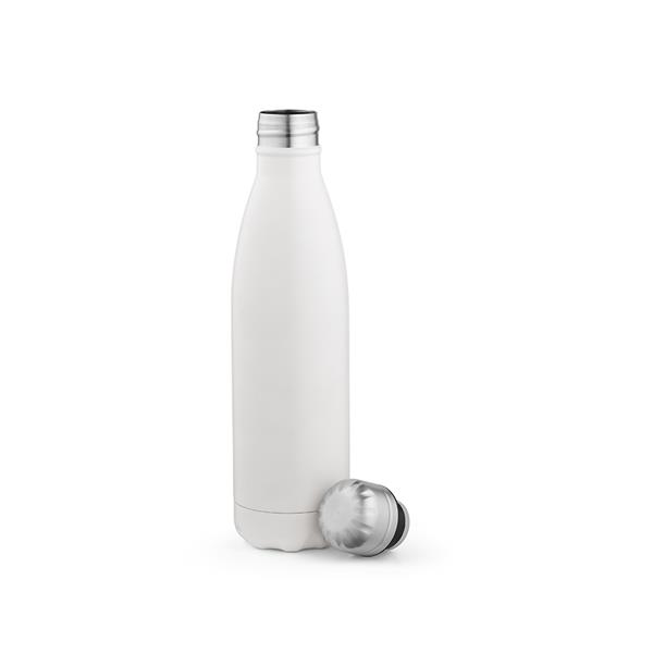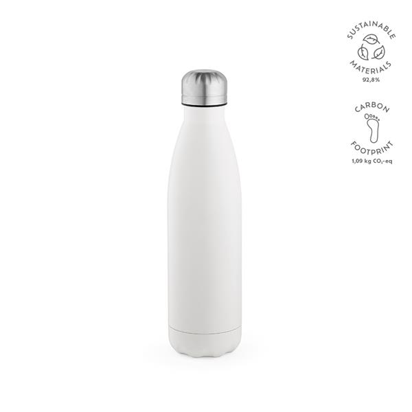 Ekologiczne nawodnienie w najlepszym wydaniu: Nasza butelka z recyklingowanej stali nierdzewnej o pojemności 535 ml (500 ml netto) jest pełna kolorów. Można ją myć w zmywarce, jest szczelna i zaprojektowana z myślą o zrównoważonym rozwoju. Oferuje system próżniowy z podwójnymi ściankami.