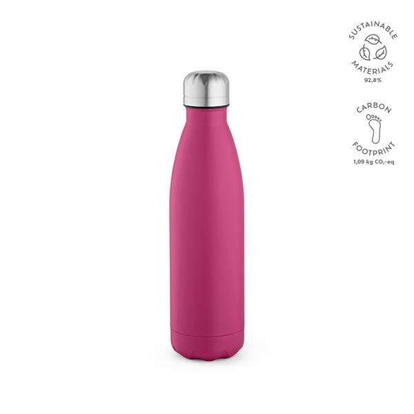 Ekologiczne nawodnienie w najlepszym wydaniu: Nasza butelka z recyklingowanej stali nierdzewnej o pojemności 535 ml (500 ml netto) jest pełna kolorów. Można ją myć w zmywarce, jest szczelna i zaprojektowana z myślą o zrównoważonym rozwoju. Oferuje system próżniowy z podwójnymi ściankami.