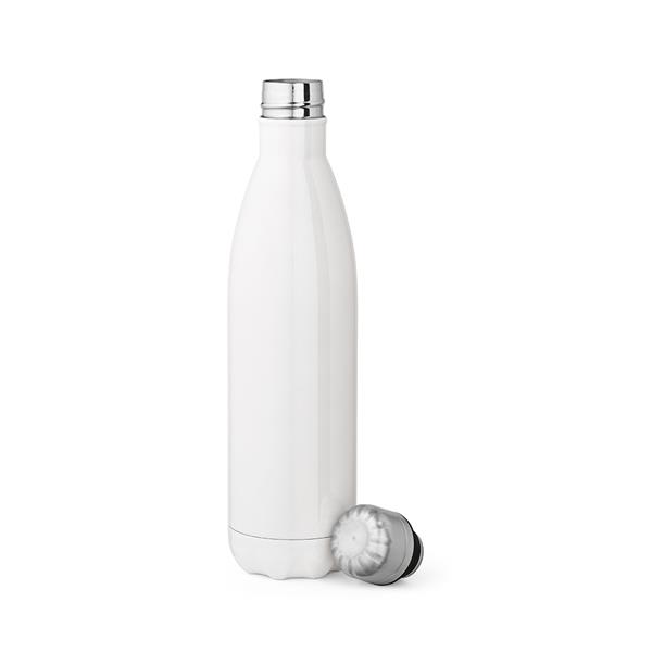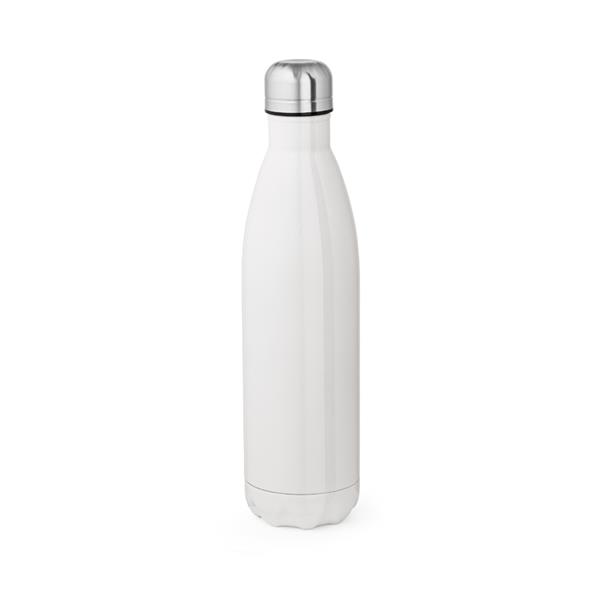 Zachowaj orzeźwienie dzięki naszej butelce z recyklingowanej stali nierdzewnej o pojemności 810 ml (770 ml netto), której korpus jest gotowy do umieszczenia pełnokolorowego nadruku sublimacyjnego. Wygodę zapewnia możliwość mycia w zmywarce i szczelność, a także podwójne ścianki.