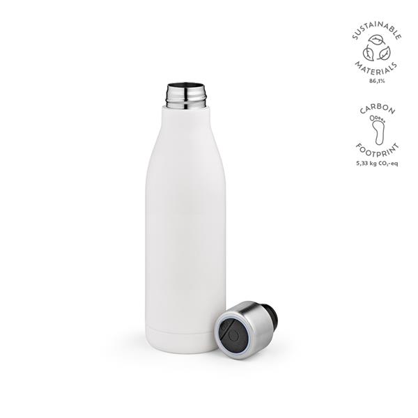 Nasza butelka z recyklingowanej stali nierdzewnej o pojemności 550 ml (500 ml netto) zapewnia orzeźwienie, jest ekologiczna i zaawansowana technologicznie. Jest ona dwuścienna i posiada funkcję samooczyszczania UV. Przygotuj wodę do picia w 3 minuty.