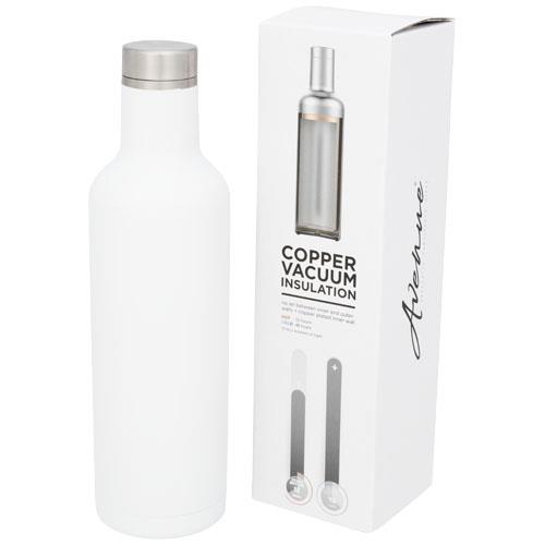 Dzięki miedzianej butelce z izolacją próżniową Pinto Twoje gorące napoje utrzymają temperaturę przez 12 godzin, a zimne – przez 48 godzin. Podwójne ścianki wykonane ze stali nierdzewnej stopnia 18/8, z izolacją próżniową, a ścianki wewnętrzne pokryte są powłoką miedzianą. Oznacza to, że można przechowywać napoje gorące lub zimne w zależności od potrzeb. Obudowa powlekana proszkowo. Pojemność wynosi 750ml. Zapakowany w pudełko upominkowe Avenue.
