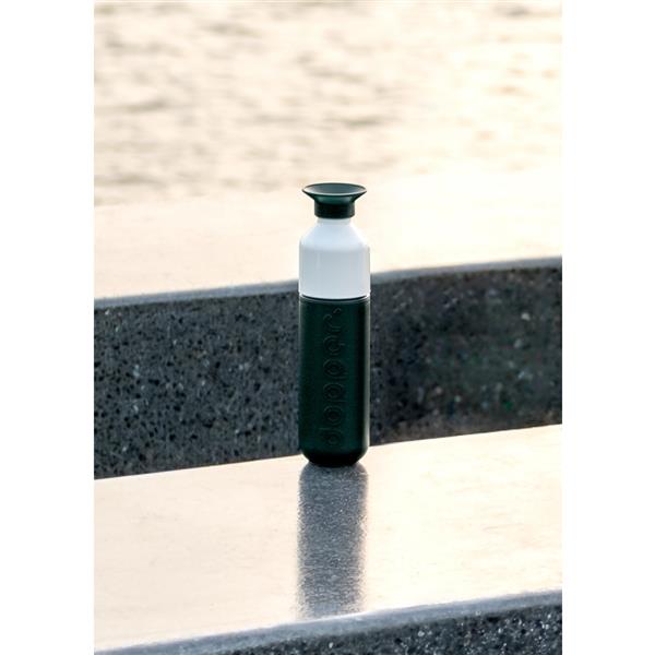 Producent nie zgadza się na umieszczanie logotypów firm z następujących branż:a. Partie polityczne (bez względu na ich poglądy)b. Przemysł zbrojeniowyc. Branża hazardowad. Przemysł tytoniowye. Branża erotycznaf. Firmy, które źle traktują zwierzętag. Marki oferujące swoje produkty w butelkach PET (np. Spa, Coca-Cola itp.)h. Firmy działające w branżach szkodliwych dla środowiska, takich jak ropa naftowa, gaz i górnictwo.Dbasz o środowisko? Lubisz ładny i praktyczny design? Jeśli tak, to plastikowa butelka wielokrotnego użytku marki Dopper będzie idealnym wyborem. Unikatowy wzór autorstwa Rinke van Remrtela, najwyższej jakości materiały użyte do produkcji (bez BPA i ftalanów) oraz praktyczny kubek ukryty w zatyczce sprawiają, że jest to czego potrzebujesz! Butelka składa się tylko z trzech części – dzięki czemu można bardzo szybko umyć ją ręcznie lub po prostu wrzucić do zmywarki. Warto również dodać, że butelki Dopper stały się bardzo ważną częścią kultury holenderskiej. Zawdzięczają to nie tylko wyjątkowemu wzornictwu i jakości wykonania, ale przede wszystkim misji społecznej. Dzięki używaniu butelek wielokrotnego użytku możemy zmniejszyć ilość odpadów plastikowych. Dodatkowo 5% zysków firmy trafia bezpośrednio do fundacji, która wspiera między innymi projekty związane z dostarczaniem wody pitnej w Nepalu i oczyszczaniu oceanów. Dane techniczne: Pojemność: 450 ml Trzy części, bardzo łatwe do czyszczenia Można myć w zmywarce do 65 ° C / 149 ° F Produkcja holenderska Do ciepłej i zimnej wody Wymiary i waga: Średnica 6 cm Wysokość 24 cm Waga 101 g Materiały: PP – polipropylen ABS (kubek) TPE (uszczelka w zatyczce i kubku) Bez BPA i ftalanów.