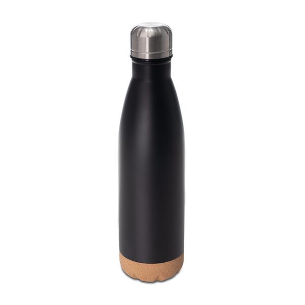 Szczelna butelka termiczna o pojemności 500 ml. Wykonana ze stali nierdzewnej. Połączenie stali i korka nadaje nowoczesny wygląd. Próżnia pomiędzy dwiema ściankami zapewnia bardzo dobre właściwości termoizolacyjne. Wewnętrzna ścianka wykonana ze stali o podwyższonej jakości 18/8. Butelka nadaje się zarówno do gorących jak i zimnych napojów. Utrzymuje temperaturę powyżej 40°C do 15 godzin.
