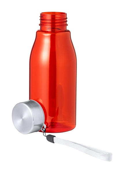 Butelka RPET z nakrętką ze stali nierdzewnej i paskiem do noszenia, 350 ml. Nie zawiera BPA. Nie nadaje się do napojów gazowanych.