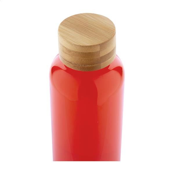 Butelka RPET z bambusową pokrywką, 500 ml. Nie zawiera BPA. Nie nadaje się do napojów gazowanych.