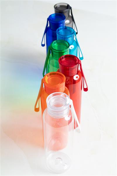 Butelka RPET z dopasowaną kolorystycznie pokrywką i silikonowym paskiem do noszenia, 500 ml. Nie nadaje się do napojów gazowanych.