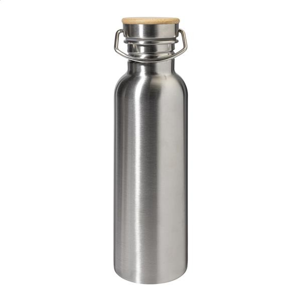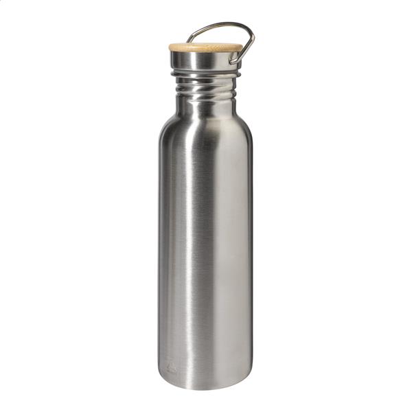 Butelka ze stali nierdzewnej z recyklingu, z bambusową pokrywką, 750 ml.