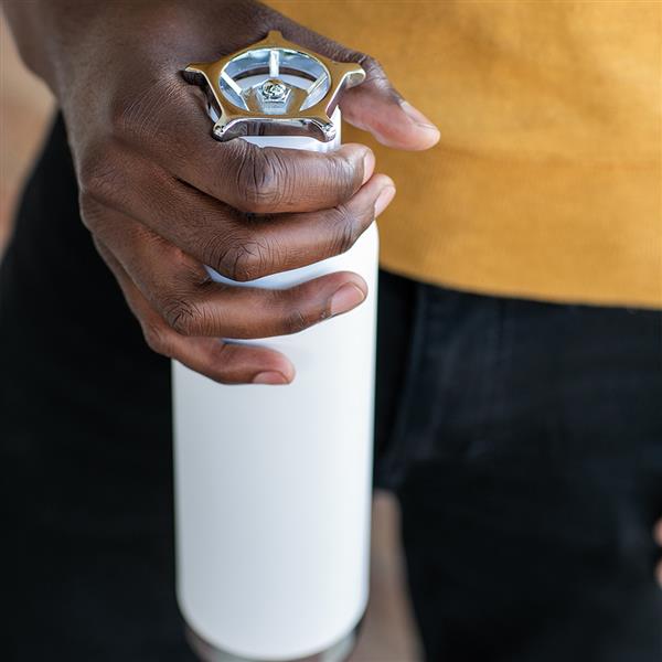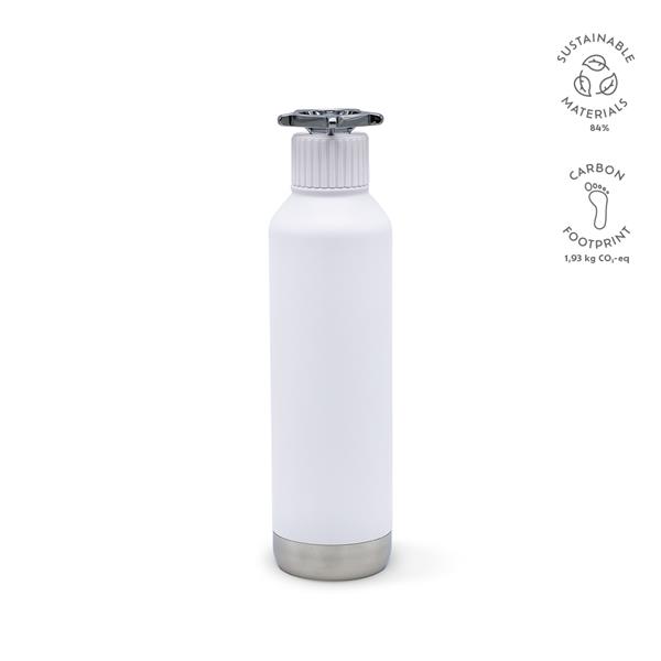 Podwójne ścianki butelki ze stali nierdzewnej z recyklingu o pojemności 780 ml (750 ml netto) nadają jej solidny styl. Innowacyjna zakrętka dodaje jej charakteru, a laserowe grawerowanie nadaje jej wyjątkowego charakteru. Zrównoważony rozwój łączy się z niezawodnym projektem na codzienne przygody.