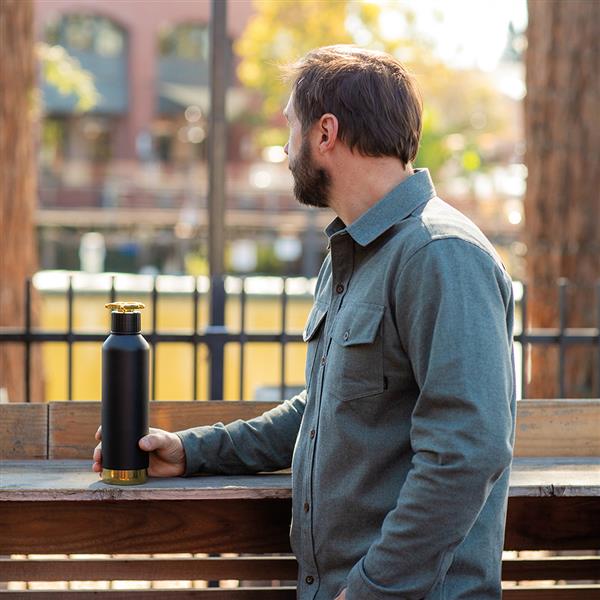 Podwójne ścianki butelki ze stali nierdzewnej z recyklingu o pojemności 780 ml (750 ml netto) nadają jej solidny styl. Innowacyjna zakrętka dodaje jej charakteru, a laserowe grawerowanie nadaje jej wyjątkowego charakteru. Zrównoważony rozwój łączy się z niezawodnym projektem na codzienne przygody.