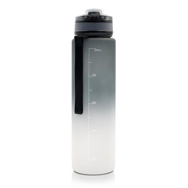 Butelka motywacyjna 1000 ml Air Gifts, skala ml z jednej strony i podziałka motywacyjna z drugiej strony, zamknięcie z blokadą, pasek na rękę (pakowany oddzielnie), gumowane wykończenie, przeznaczona wyłącznie do zimnych i niegazowanych napojów