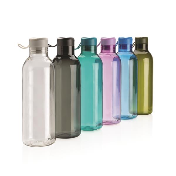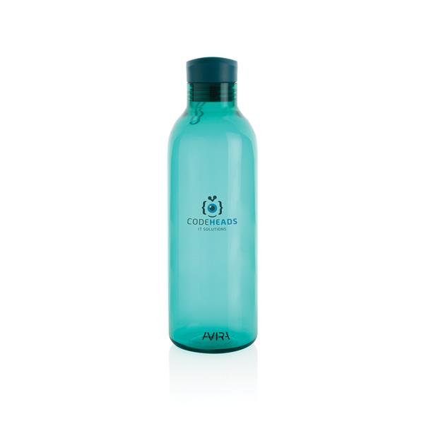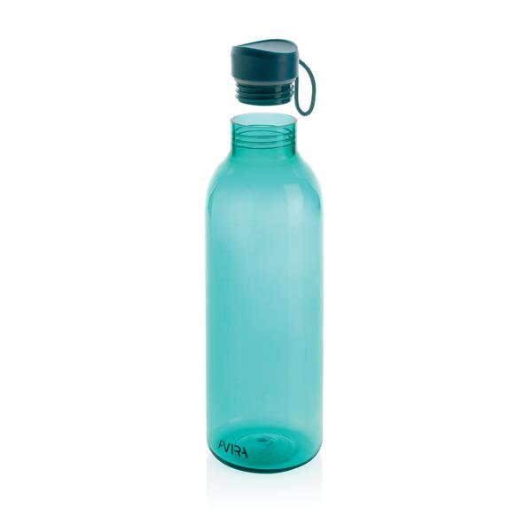 Butelka sportowa 1000 ml, wykonana z RPET z certyfikatem RCS, całkowita zawartość materiałów z recyklingu obliczona na podstawie wagi całkowitej przedmiotu: 86%, w pudełku z papieru kraftowego z certyfikatem FSC®, zalecana do zimnych napojów, wyłącznie mycie ręczne, pudełko można wykorzystać jako stojak na telefon lub doniczkę