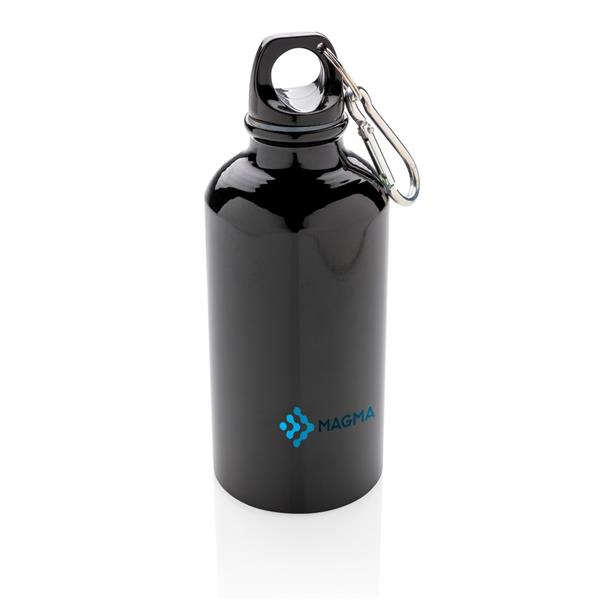 Butelka sportowa 400 ml z karabińczykiem (tylko do użytku promocyjnego), wykonana z aluminium, zalecana wyłącznie do zimnej wody, ślad węglowy produktu: 0,8 kg CO2