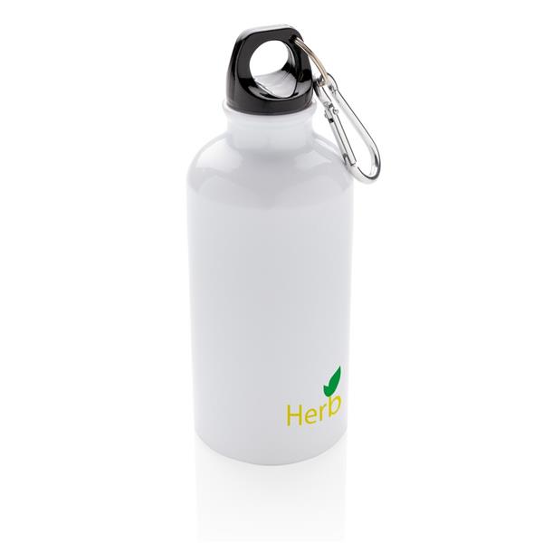 Butelka sportowa 400 ml z karabińczykiem (tylko do użytku promocyjnego), wykonana z aluminium, zalecana wyłącznie do zimnej wody, ślad węglowy produktu: 0,8 kg CO2