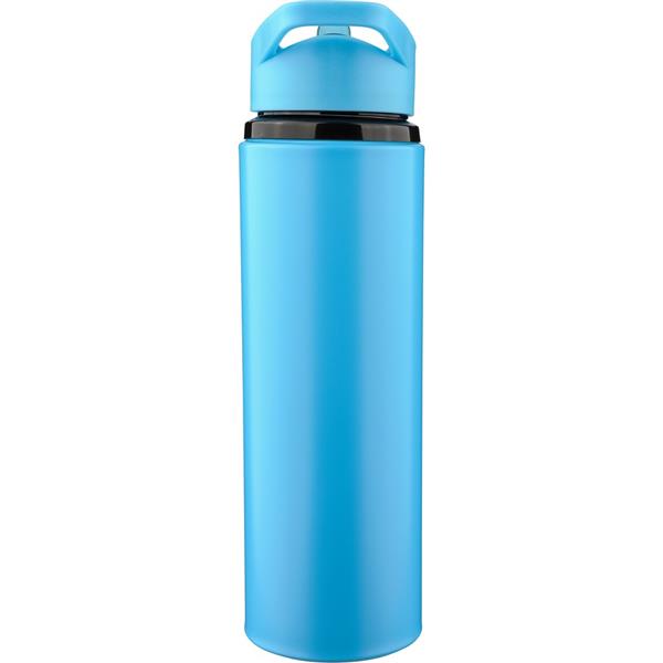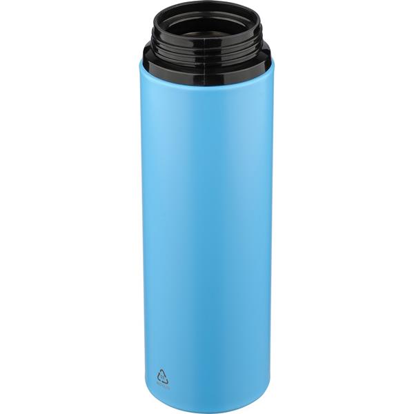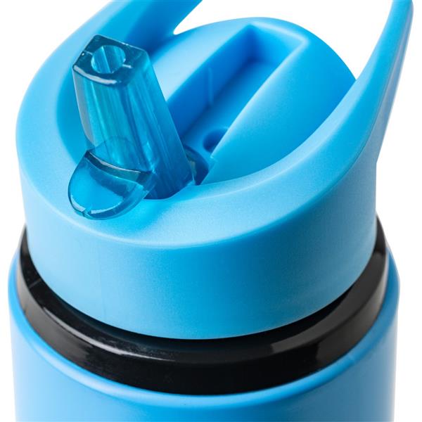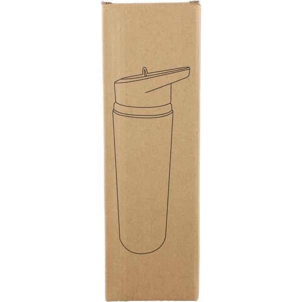 Butelka sportowa 500 ml, z uchwytem ułatwiającym przenoszenie, pojedyncza ścianka, składany ustnik ze słomką, ikona recyklingu na produkcie, zapakowana pojedynczo w brązowe kartonowe pudełko, produkt wykonany ze stali nierdzewnej 304 z recyklingu