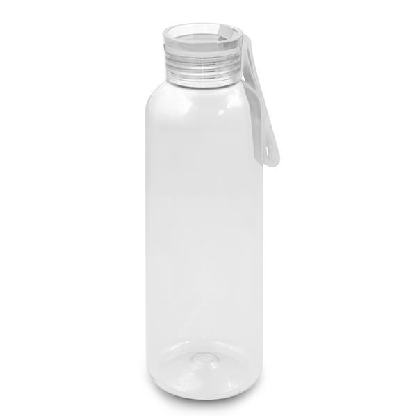 Butelka sportowa 500 ml z uchwytem zwiększającym wygodę użytkowania, przeznaczona wyłącznie do zimnych i niegazowanych napojów, produkt wykonany z RPET, PS oraz silikonu