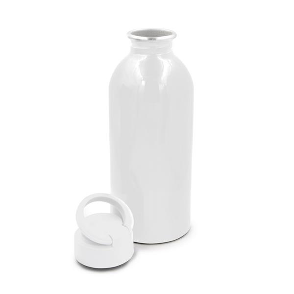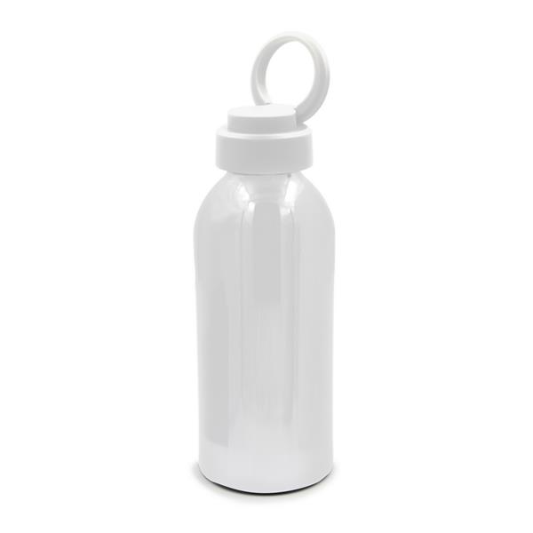 Sportowa butelka 585 ml, posiada plastikową zakrętkę ze składanym uchwytem ułatwiającym noszenie, zalecana wyłącznie do zimnej wody, produkt wykonany z aluminium