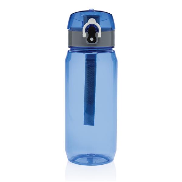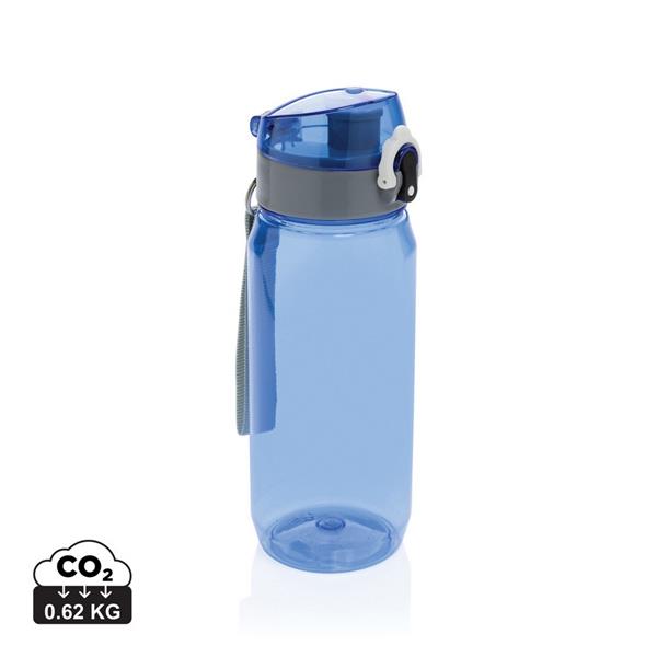 Butelka sportowa 600 ml, wykonana z RPET, całkowita zawartość materiałów obliczona na podstawie wagi całkowitej przedmiotu: 35%, zalecana wyłącznie do zimnych napojów, wyłącznie mycie ręczne, w pudełku z papieru kraftowego