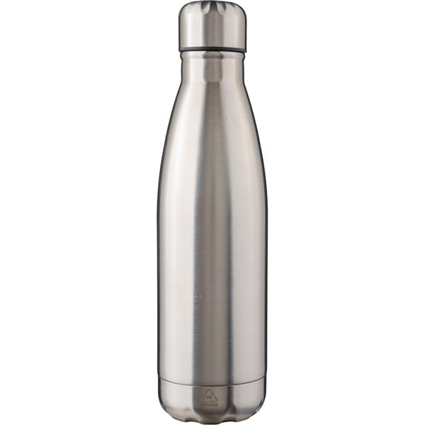 Butelka sportowa 650 ml, ikona stali nierdzewnej z recyklingu na produkcie, zapakowana w brązowy kartonik, produkt wykonany ze stali nierdzewnej z recyklingu