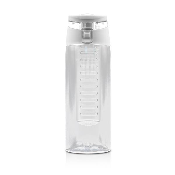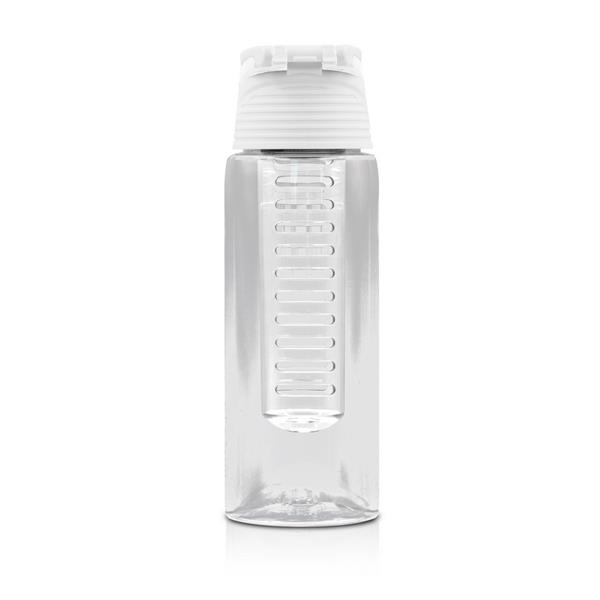 Butelka sportowa 700 ml Air Gifts, posiada pojemnik na lód lub owoce umożliwiający nadanie wodzie smaku według własnych preferencji, kolorowa zakrętka ze składanym uchwytem ułatwiającym noszenie, butelka przeznaczona wyłącznie do zimnych i niegazowanych napojów, produkt wykonany z plastiku