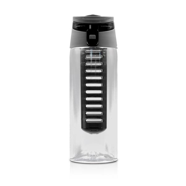 Butelka sportowa 700 ml Air Gifts, posiada pojemnik na lód lub owoce umożliwiający nadanie wodzie smaku według własnych preferencji, kolorowa zakrętka ze składanym uchwytem ułatwiającym noszenie, butelka przeznaczona wyłącznie do zimnych i niegazowanych napojów, produkt wykonany z plastiku