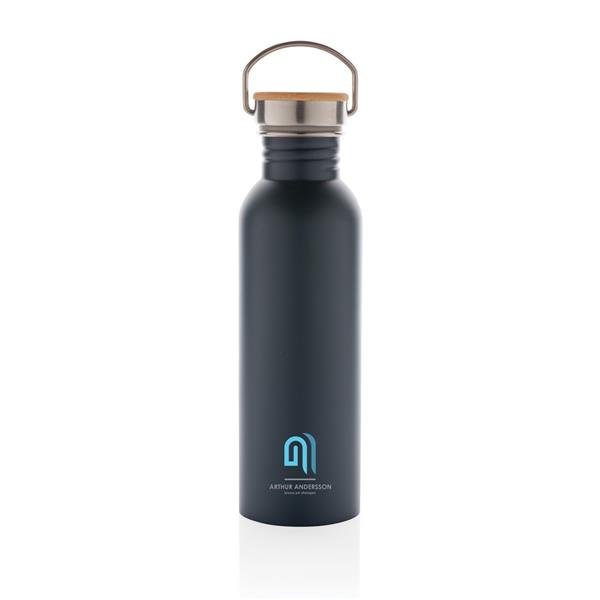 Butelka sportowa 700 ml, wykonana ze stali nierdzewnej, zakrętka z bambusa i stali nierdzewnej, z uchwytem, wyłącznie mycie ręczne, ślad węglowy produktu: 2,03 kg CO2