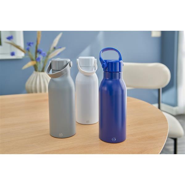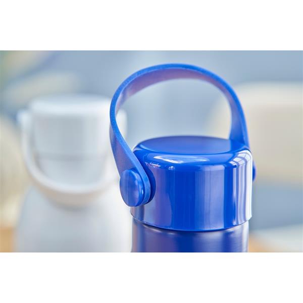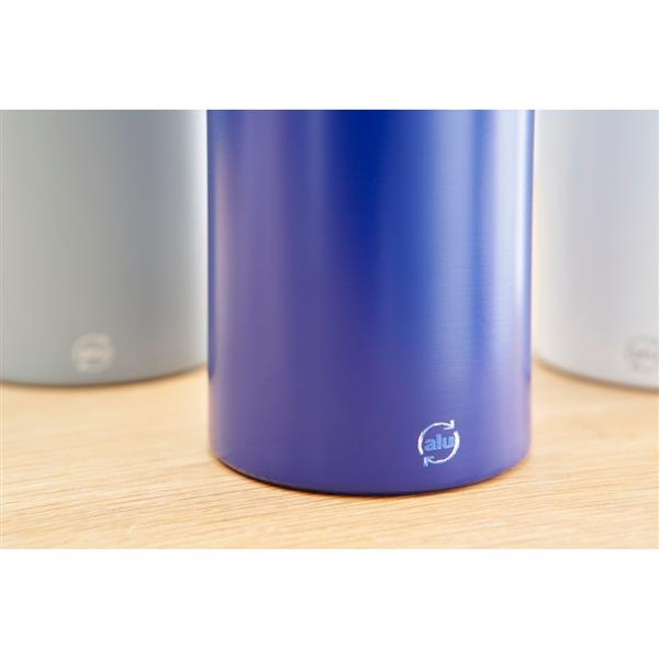 Butelka sportowa 700 ml z matowym wykończeniem, plastikowa zakrętka z silikonowym paskiem ułatwiającym noszenie lub przypięcie, ikona aluminium z recyklingu na produkcie, produkt wykonany z aluminium z recyklingu