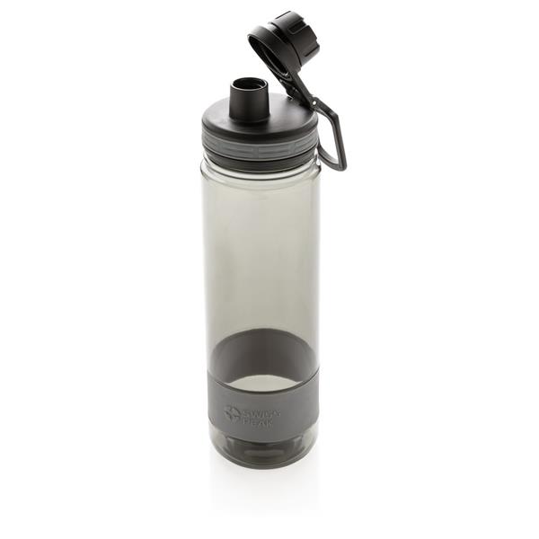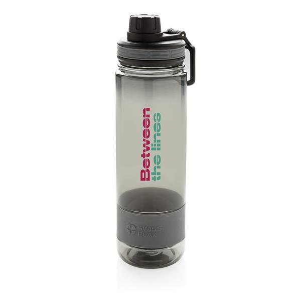 Butelka sportowa 750 ml, wykonana z Tritanu, szczelna, silikonowy pierścień poprawiający wygodę trzymania, ślad węglowy produktu: 1,19 kg CO2