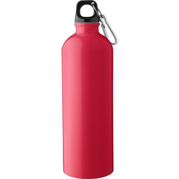 Butelka sportowa 750ml, jednowarstwowa, ikona recyklingu na produkcie, nie nadaje się do mycia w zmywarce, produkt wykonany ze stali nierdzewnej z recyklingu, nakrętka z PP, srebrny aluminiowy karabińczyk