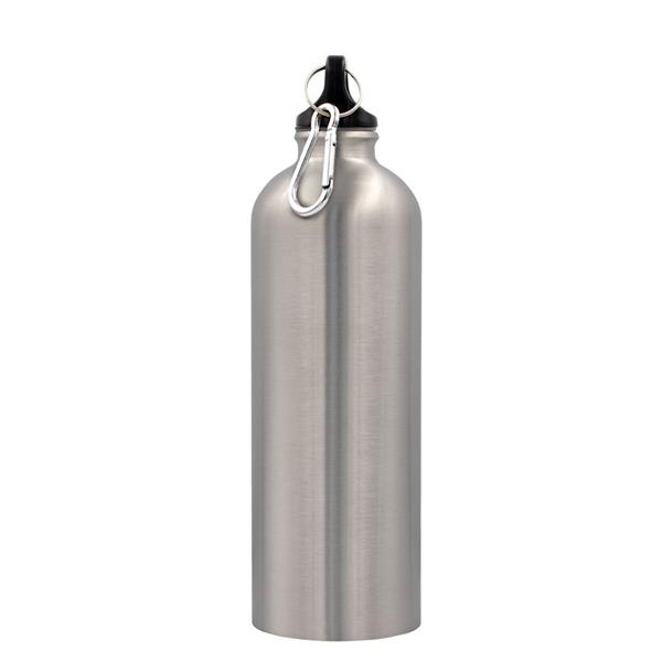 Butelka sportowa 750 ml z karabińczykiem umożliwiającym przypinanie, zalecana wyłącznie do zimnej wody, błyszczące wykończenie, produkt wykonany ze stali nierdzewnej z recyklingu