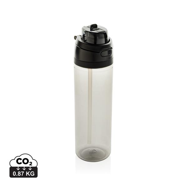 Butelka sportowa 800 ml, posiada słomkę i szeroki otwór do picia, wieczko z blokadą, uchwyt, wykonana z RPET, całkowita zawartość materiałów z recyklingu obliczona na podstawie wagi całkowitej produktu: 47%