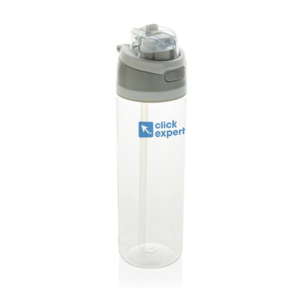Butelka sportowa 800 ml, posiada słomkę i szeroki otwór do picia, wieczko z blokadą, uchwyt, wykonana z RPET, całkowita zawartość materiałów z recyklingu obliczona na podstawie wagi całkowitej produktu: 47%