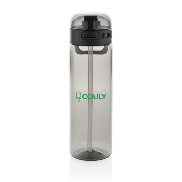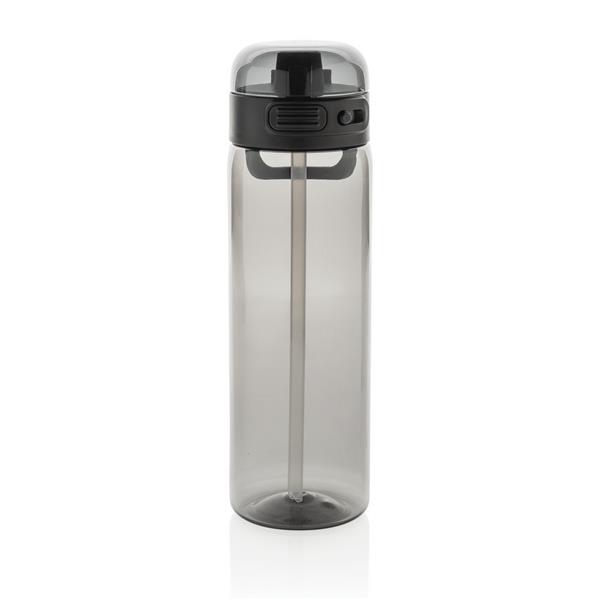 Butelka sportowa 800 ml, wieczko z blokadą i przyciskiem otwarcia ustnika umożliwiającym obsługę jedną ręką, wykonana z RPET, całkowita zawartość materiałów z recyklingu obliczona na podstawie wagi całkowitej przedmiotu: 84%