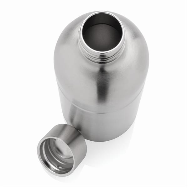 Butelka sportowa 800 ml, pojedyncza ścianka, odpowiednia do napojów gazowanych, szczelna, wykonana ze stali nierdzewnej z recyklingu z certyfikatem RCS, całkowita zawartość materiałów z recyklingu obliczona na podstawie wagi całkowitej przedmiotu: 85%, w pudełku z papieru kraftowego z certyfikatem FSC®, wzór zastrzeżony®, ślad węglowy produktu: 1,66 kg CO2