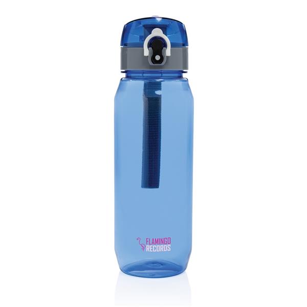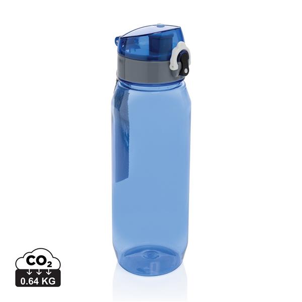 Butelka sportowa 800 ml, uchwyt, wykonana z RPET, nie wymaga obsługi oburącz, całkowita zawartość materiałów z recyklingu obliczona na podstawie wagi całkowitej przedmiotu: 73%, wyłącznie mycie ręczne, zalecana wyłącznie do zimnej wody, w pudełku z papieru kraftowego