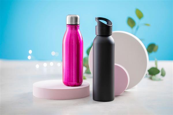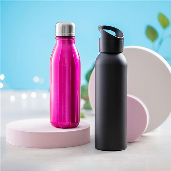 Aluminiowa butelka sportowa w matowym kolorze z dopasowaną kolorystycznie zakrętką, 600 ml. Nie nadaje się do napojów gazowanych. Description: Aluminiowa butelka sportowa w matowym kolorze z dopasowaną kolorystycznie zakrętką, 600 ml. Nie nadaje się do napojów gazowanych. Primary Color: czarny Material 1: Aluminium Pojemność: 600 ml Rozmiar: o66×250 mm