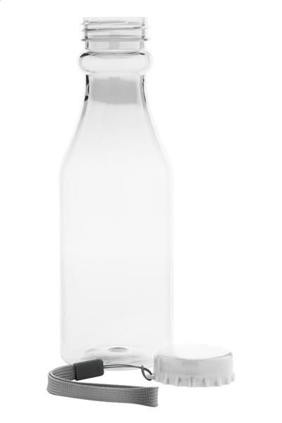 Butelka sportowa z przezroczystego plastiku. Z zakręcaną pokrywką i paskiem. Nie nadaje się do napojów gazowanych.