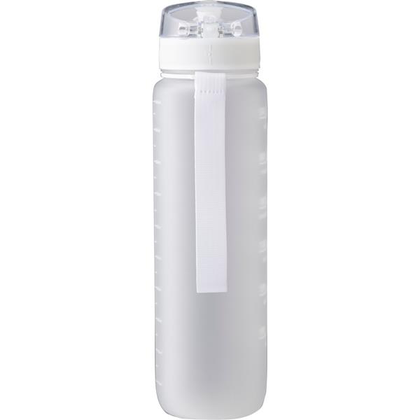 Butelka motywacyjna RPET 1000 ml, skala ml z jednej strony i miarka motywacyjna z drugiej strony, gumowane wykończenie