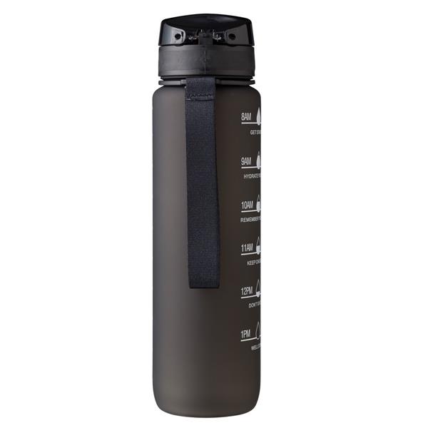 Butelka motywacyjna RPET 1000 ml, skala ml z jednej strony i miarka motywacyjna z drugiej strony, gumowane wykończenie