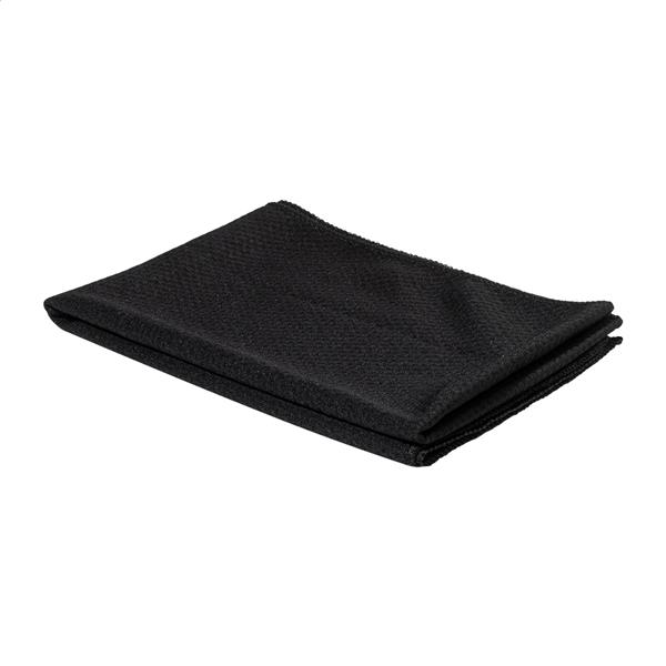 Ręcznik sportowy z poliestru RPET w butelce sportowej RPET z PP z klapką, zintegrowaną słomką i paskiem do noszenia. Pojemność 800 ml. Bez BPA. Nie nadaje się do napojów gazowanych. Wymiary ręcznika: 30×80 cm.