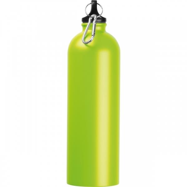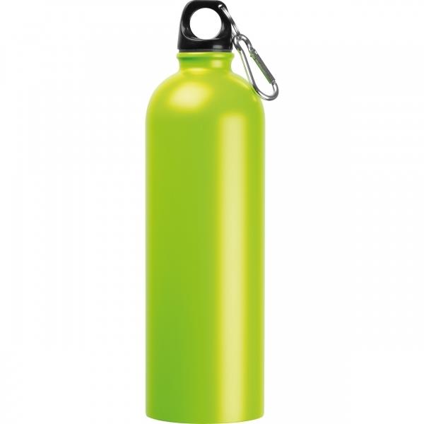 Lekka, stalowa butelka o pojemności 750 ml, z zakrętką, do której przymocowany został karabińczyk, dzięki czemu butelkę można wygodnie przyczepić np. do plecaka.