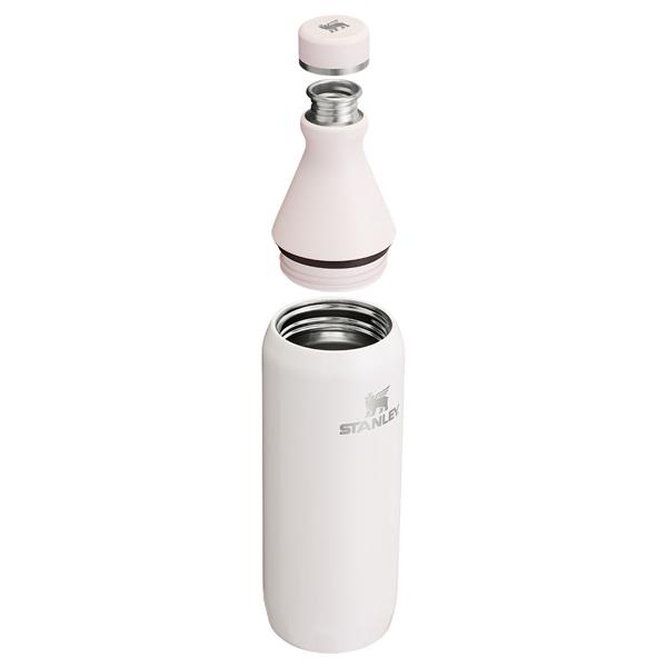 Praktyczna i elegancka butelka na wodę o pojemności 0,6 LButelka wykonana jest w 90% ze stali nierdzewnej pochodzącej z recyklingu, naturalnie wolnej od BPA.Jej tradycyjny kształt został przełamany praktycznym rozwiązaniem z dwoma otworami.Górny wąski otwór pełni rolę ustnika do picia.Szeroki otwór służy zaś do łatwiejszego mycia butelki oraz dodawania do napoju kostek lodu lub kawałków owoców.Właściwości termiczne butelki pozwalają na utrzymanie zimnej temperatury wody do 11 godzin po dodaniu kostek lodu, zaś bez dodatku lodu około 6 godzin.Butelka jest w 100% szczelna. Pod korkiem znajduje się silikonowa uszczelka.Rozmiar butelki pasuje do większości uchwytów rowerowych i samochodowych.Butelka przeznaczona jest do zimnych napojów. Nie należy wlewać do niej gorących i wrzących płynów z uwagi na ryzyko poparzenia i uszkodzenie butelki.* Mycie w zmywarce produktów, które są do tego przeznaczone może z czasem powodować szybsze pogarszanie się ich właściwości wizualnych w porównaniu do mycia ręcznego. Jeśli jest dla Ciebie ważne, aby Twój produkt na dłużej zachował swój wygląd, producent zaleca mycie ręczne za pomocą delikatnej gąbki.
