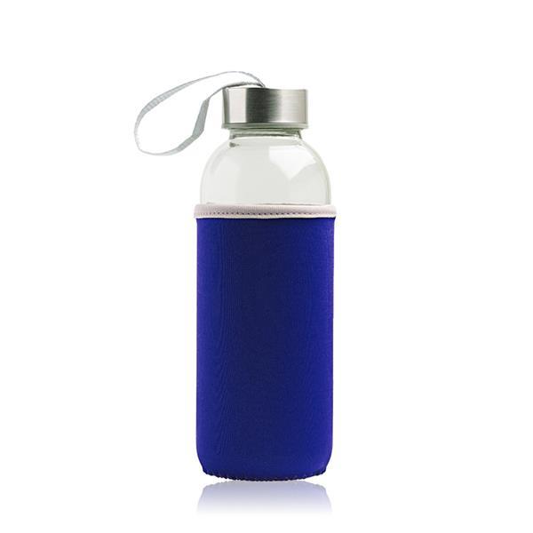 Butelka szklana w neoprenowym etui, z metalową zakrętką, pojemność 460 ml. Pakowana w pudełko ozdobne.