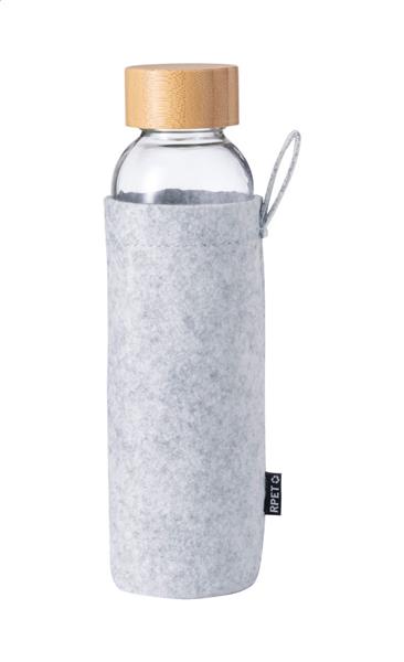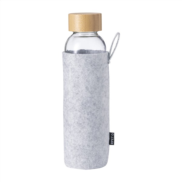 Butelka szklana z bambusową zakrętką i filcowym pokrowcem RPET, 500 ml. Nie nadaje się do napojów gazowanych.
