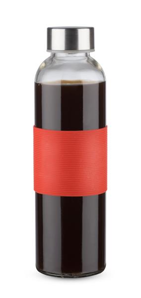 Butelka GLASSI o pojemności 510 ml to przyjazna środowisku alternatywa dla plastikowych butelek. Wykonana jest ze szkła, dzięki czemu jest nie tylko ekologiczna, ale także nie zmienia smaku napojów. Silikonowy pasek w różnych kolorach ułatwia trzymanie, zapobiega poparzeniom oraz wyślizgnięciu się butelki z ręki, a także stanowi element wyróżniający butelkę od innych. Butelka odpowiednia do napojów o maksymalnej temperaturze 60°C.