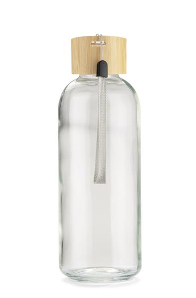 Butelka szklana VITRO o pojemności 650 ml wykonana jest ze szkła borokrzemowego, które charakteryzuje się wysoką odpornością na zmiany temperatury. Zakrętka z naturalnego bambusa ma oryginalny, ścięty kształt, co nadaje butelce nowoczesny wygląd. Dołączona smycz ułatwia przenoszenie i użytkowanie na co dzień. Możliwość znakowania sprawia, że VITRO to atrakcyjna butelka reklamowa.