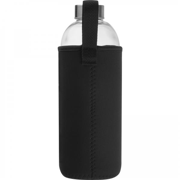 Szklana butelka o pojemności 1000 ml w neoprenowym etui, z zakrętką ze stali nierdzewnej.