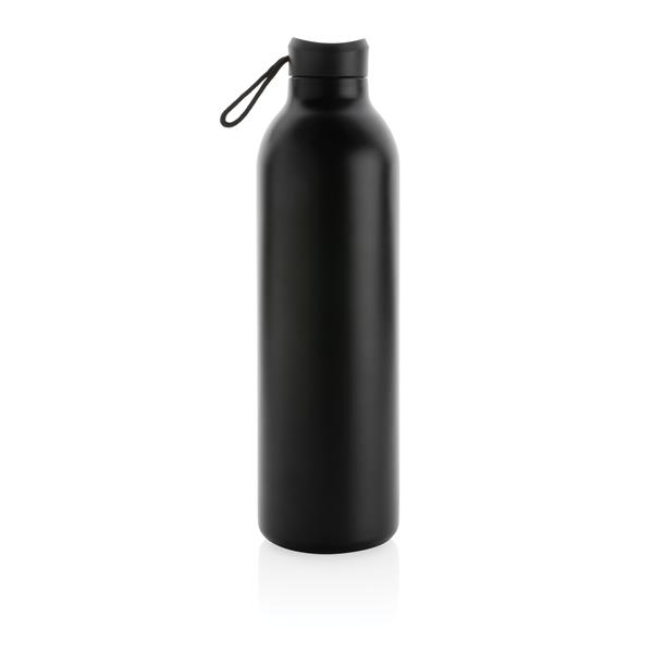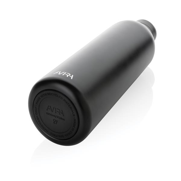 Butelka termiczna 1000 ml, wykonana ze stali nierdzewnej pochodzącej z recyklingu, całkowita zawartość materiałów z recyklingu obliczona na podstawie wagi całkowitej przedmiotu: 97%, podwójne ścianki z próżnią pomiędzy, pasuje do większości uchwytów samochodowych, w pudełku z papieru kraftowego, pudełko można wykorzystać jako stojak na telefon lub doniczkę, utrzymuje temperaturę napojów gorących do 20 godzin oraz zimnych do 20 godzin